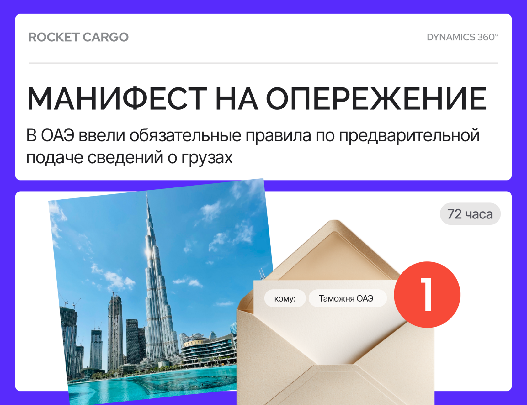 С 1 сентября ОАЭ постепенно внедряют обязательную подачу манифеста об импортируемом туда грузе. Причем информация о ввозимых товарах должна подаваться заранее. Компания Rocket Cargo постаралась разобраться, что это значит.